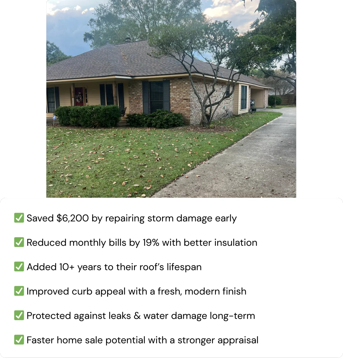 We check for leaks, storm damage, poor insulation, weak spots, and hidden issues. You’ll also get a clear upgrade plan with projected savings—at no cost.